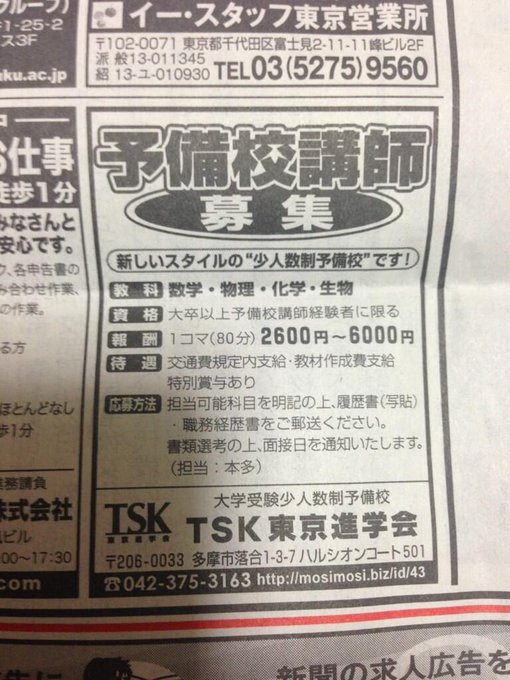鈴木悠介 世界史講師 Twitterren 朝刊なう 教育関連求人特集 早稲アカ大学受験部 メディカルアーク 医学部 東大専門塾クエスト 医系 予備校講師の会 ユーデックなど Http T Co Hf9um1gvyv