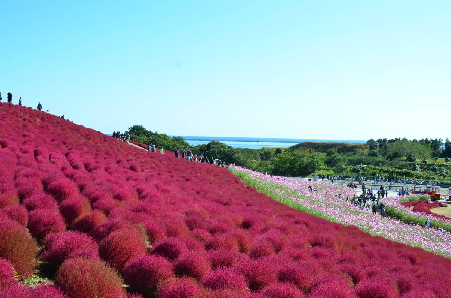コキアの紅葉とコスモスが絶景 茨城県国営ひたち海浜公園の秋を彩るコキアカーニバル トリドリ